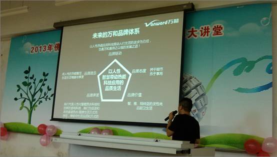 本次“品牌大讲堂”特别邀请了中国500最具价值品牌企业、“中国驰名商标”企业、“中国名牌产品”企业——广东万和新电气股份有限公司市场部部长姜威先生作主讲。姜威先生从万和的成长历程讲起,与在场的师生一起分享企业创建、保护品牌、实施品牌战略的心得体会,并重点讲述了如何去创造自己的个人品牌。同学们认真聆听,积极参与互动交流,进一步加深了对商标战略的认识,提高了自我品牌规划与认识。