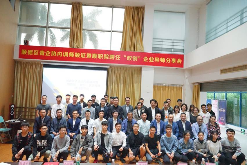 顺德区青企协会内训讲师颁证暨永利官网聘任“双创”企业导师发布会于2019年5月8日下午在永利官网大学生创业孵化基地路演厅举行。顺德青年企业家协会会长陈浩然先生、永利官网党委副书记、纪委书记谭谦章,顺德青年企业家代表30多人及永利官网师生共70多人参加发布会。