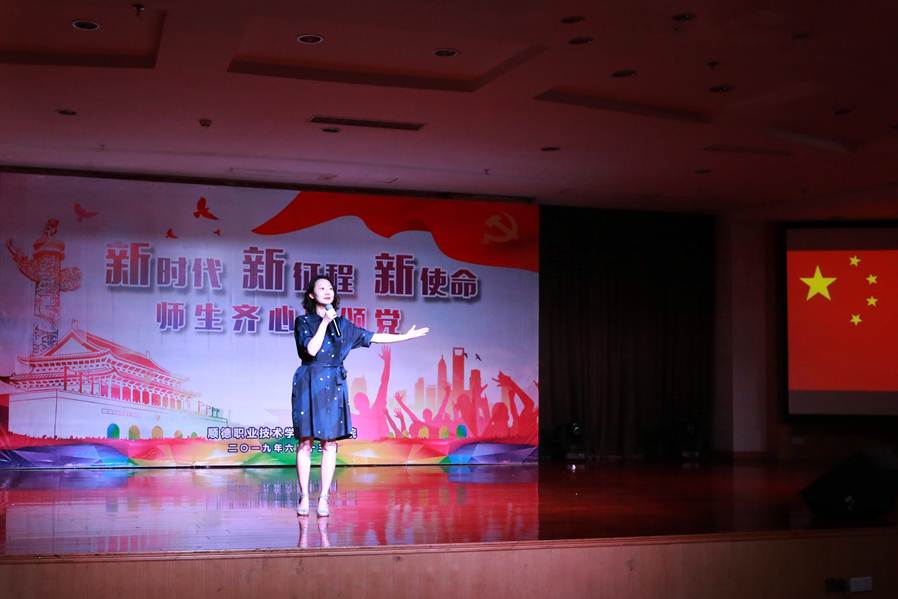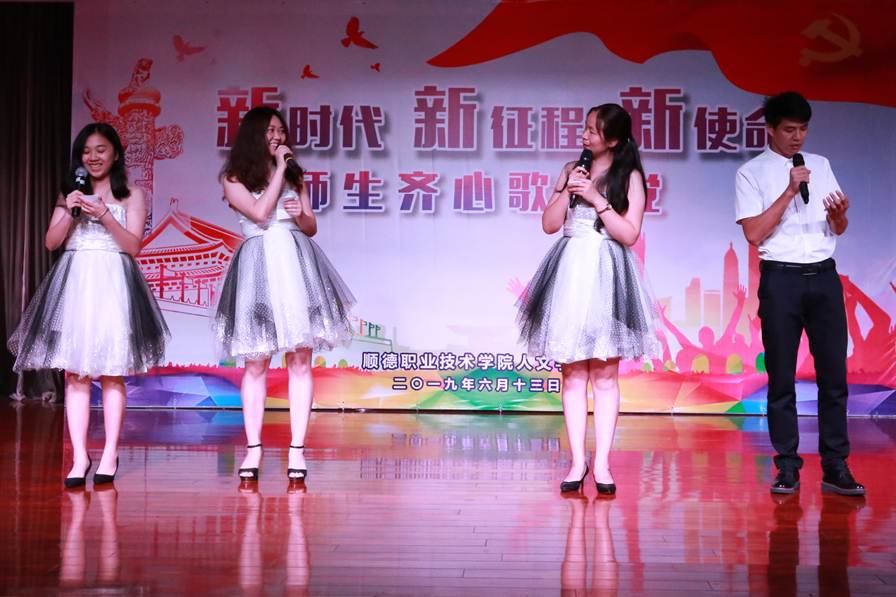 随后,各教研室老师进行精彩纷呈的节目表演,由文化素质教育中心邓睿卓、杨毅路、郑海曙三位老师合唱《把一切献给党》《再一次出发》唱出了共产党人“不忘初心、牢记使命”的忠心和豪迈。校团委全体老师带来诗朗诵《致青春》,老师们整齐的服装、恰好的配乐、真挚的感情,赢得了大家一阵阵热烈的掌声。学院办公室全体老师带来的小合唱《年轻的朋友来相会》,他们精心准备节目就是用实际行动致敬党的生日。吴舒婷副院长的诗朗诵《旗》焕发着鲜活生命力,让我们对“不忘初心牢记使命”有自己独特的理解与追求。文秘教研室强金国老师带来一首《蒙古人》,他苍劲有力富有穿透力的歌声赢得现在老师们阵阵欢呼声;社工教研室带来《社工之歌》让我们重新认识了社工这个职业深刻的内涵和定义。数学教研室邱仰聪老师的一曲家喻户晓《龙的传人》唱出了强烈民族自豪感和爱国情感。大学国文教研室黄娟、冯燕老师为大家带来歌曲《yesterday once more》,同时还有学生的合唱《听妈妈讲那过去的故事》《长城谣》以及《即刻出发》等节目。