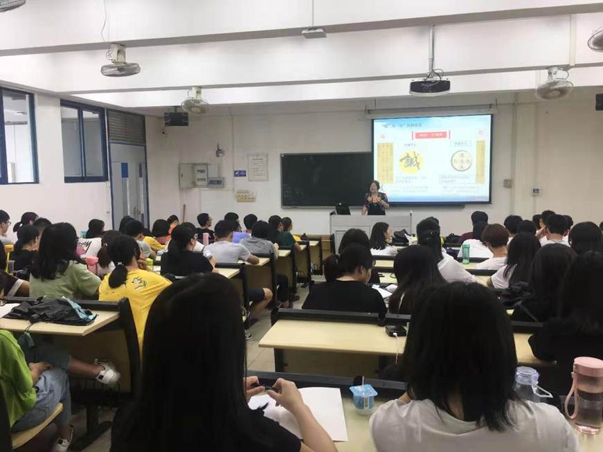 10月8日下午,商学院党总支刘红书记在教学楼8栋406为18级工商企业管理专业和市场营销专业近150名学生上第一堂思想政治理论课。
