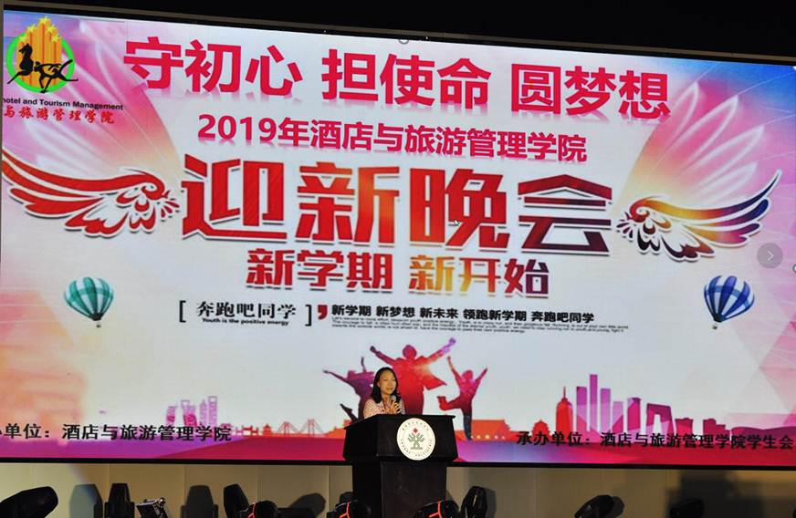 10月23日晚,酒店与旅游管理学院“守初心、担使命、圆梦想”2019级迎新晚会在永利官网梁銶琚堂举行。校学工部、校团委、酒管学院相关负责人、2019级新生班主任、全体辅导员以及全体新生观看了本次演出。