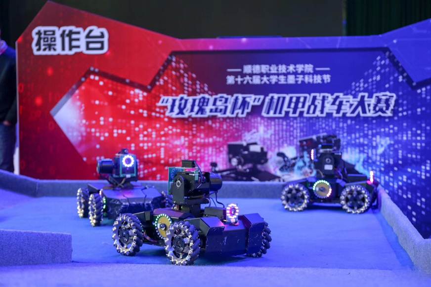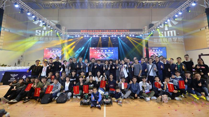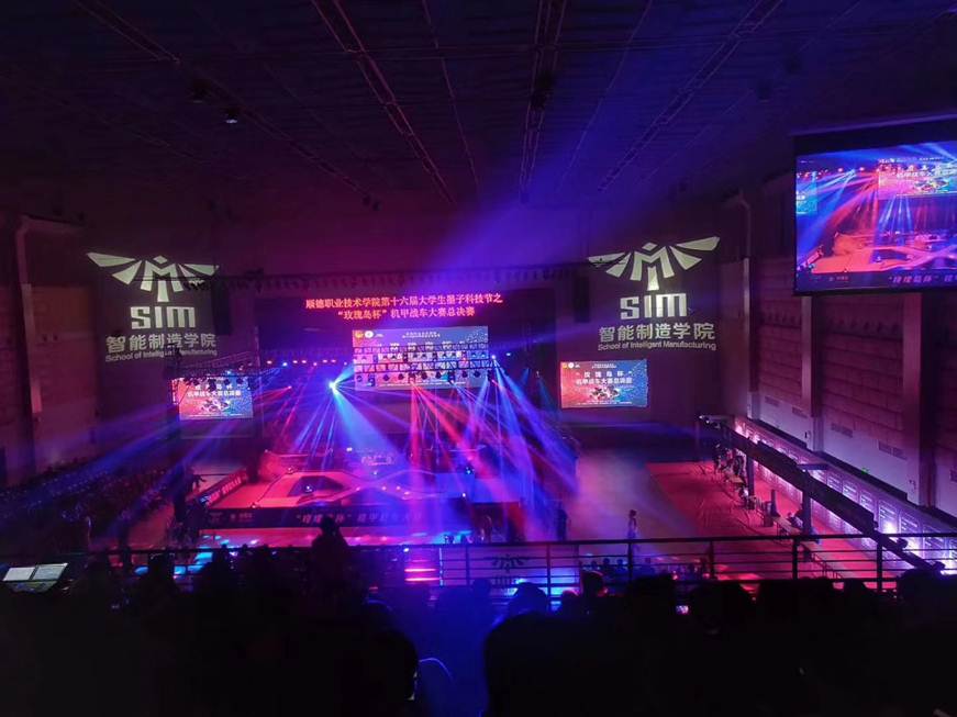 为加强学生科技创新能力培养,使校园文化活动与学生专业素养提升相融合,12月11日晚,由学校团委主办,智能制造学院团委承办,华南理工大学机器人创新基地、佛山市顺德区第一中学协办,广东玫瑰岛卫浴有限公司支持的第十六届大学生墨子科技节之“玫瑰岛杯”机甲战车大赛总决赛在梁銶琚堂隆重上演。学校学生工作部、校团委、校友会基金会等职能部门负责人,智能制造学院全体党政班子成员,佛山市顺德区第一中学相关负责人,广东玫瑰岛卫浴有限公司相关负责人,及师生代表合计1800多人参与了本次活动。
