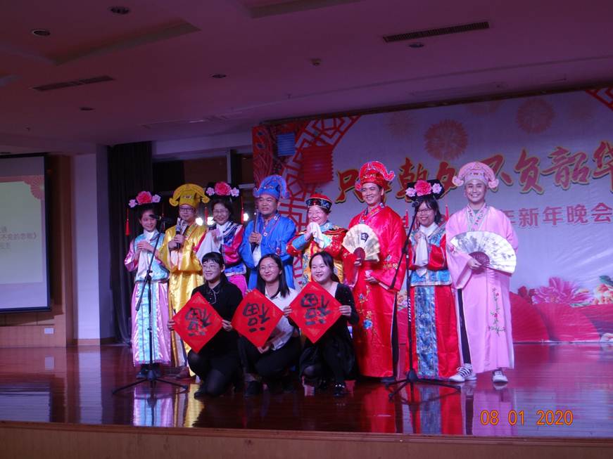 2020年1月8日晚上,主题为“只争朝夕,不负韶华”的商学院2020年新年晚会于学校教工之家顺利举行。商学院领导、全体教职工及家属逾80人参加了本次活动。