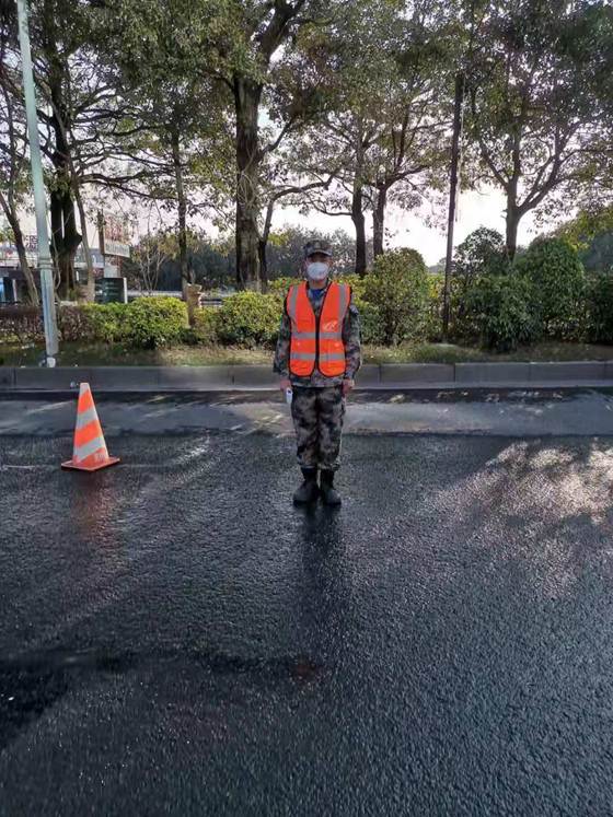 19工业分析1班唐威同学在社区道路值岗