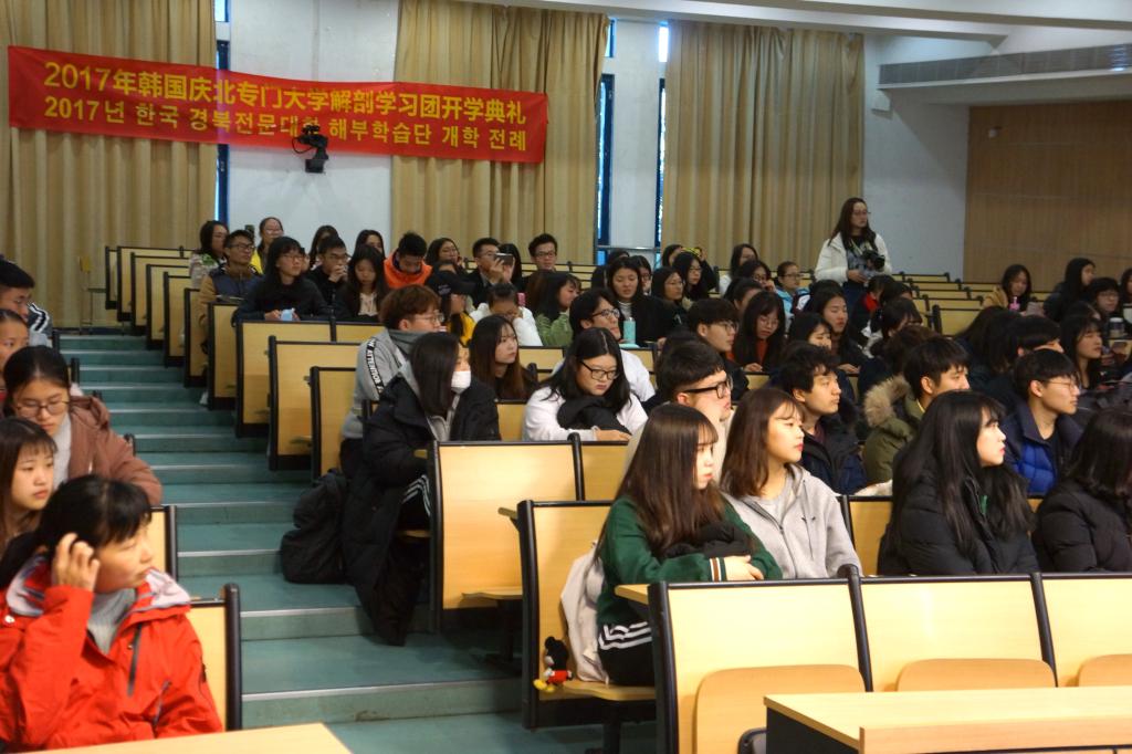 12月18日,韩国庆北专门大学解剖学习团师生一行38人抵达永利官网,开始为期一周的解剖学实操学习。19日上午,学校在5号学术报告厅为韩国解剖学习团进行了简短而又隆重的开学典礼。韩国庆北专门大学校长崔宰赫、国际交流学院院长金炳旭、理疗系主任黄成培,永利官网校长助理罗丹、国际交流与合作处负责人、医药卫生学院负责人及师生代表共200多人参加了典礼。典礼由医药卫生学院负责人主持。