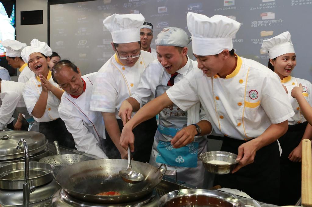 随后,在永利官网烹饪专业实训中心,美国夏威夷大学代表团与永利官网酒管学院师生开展了顺德美食文化交流活动。