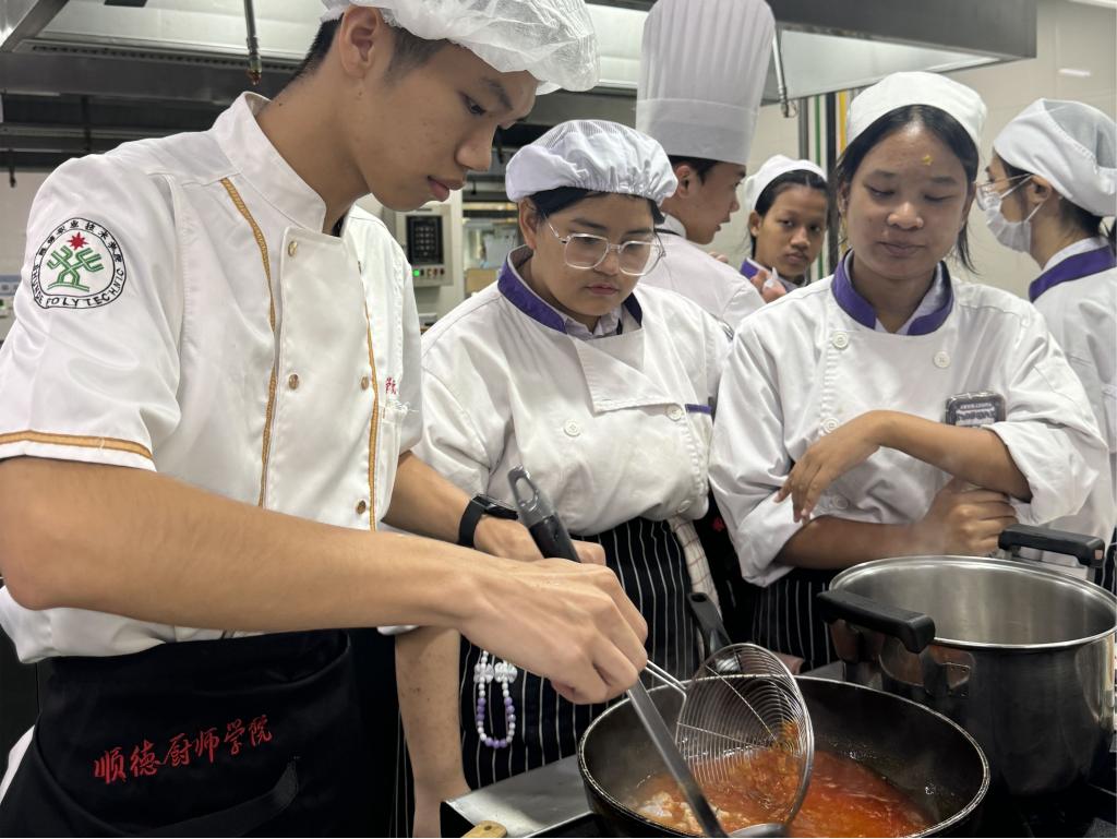 师生们在泰国积极分享粤菜技艺,利用泰国食材实践顺德技艺,探讨中泰烹饪文化异同,碰撞出创意火花。此外,交流团还参与文化活动,了解泰国传统习俗与艺术形式,拓宽国际视野,增进文化理解与尊重,两校师生建立深厚情谊,为进一步合作筑牢根基。