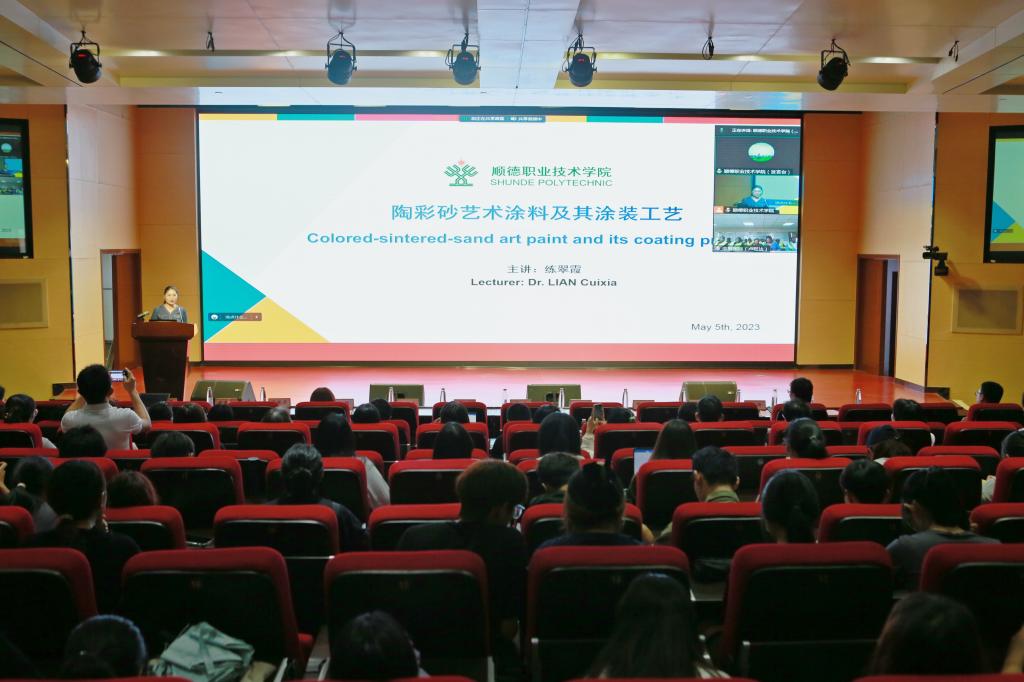 在永利官网活动会场,轻化与材料学院教师练翠霞博士为中辰科建集团卢旺达籍员工及在场师生作《陶彩砂艺术涂料及其涂装工艺》专题培训。