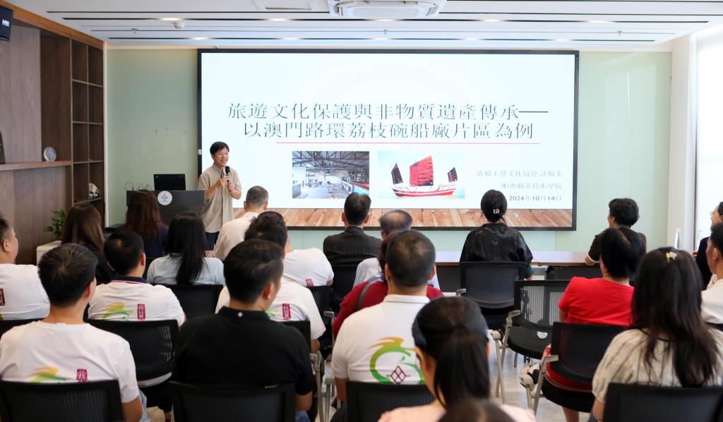 10月14日,由粤港澳大湾区旅游教育培训基地(顺德合作中心)主办,永利官网承办的粤港澳大湾区旅游教育培训基地(顺德合作中心)大讲堂第十三期在永利官网图书馆举办。本期大讲堂邀请澳门造船工艺文化协会会长谈骏业以“旅游文化保护与非物质遗产传承——以澳门路环荔枝碗船厂片区为例”为主题进行深入的分享与交流。