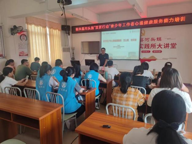 7月3日,新兴县河头镇邀请永利官网医药卫生学院“双百行动”服务队为河头镇中小学德育教师、党群干部、社区工作者开展专题培训。河头镇副镇长卢芳菲主持本次培训。